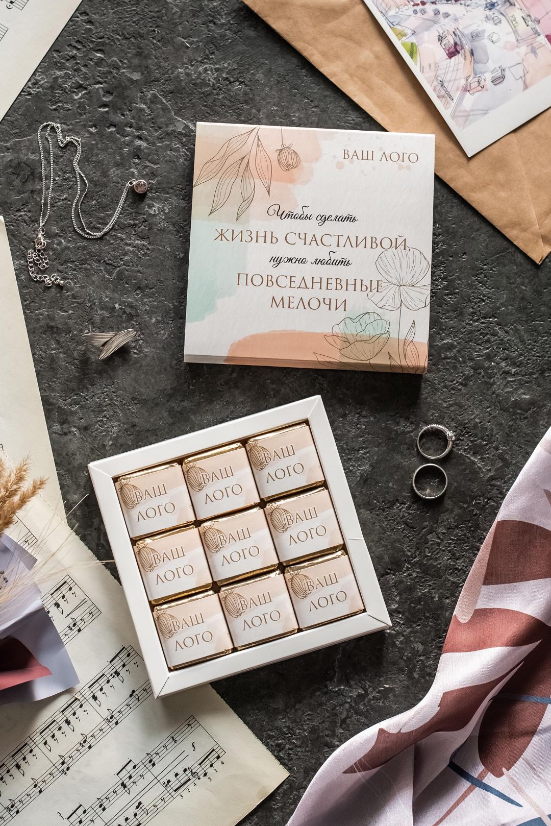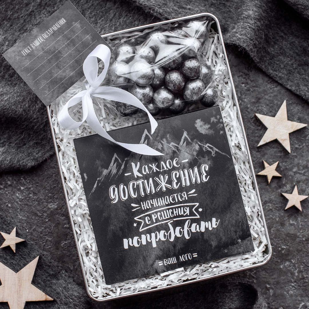 Предлагаем Вам ознакомиться с уже готовыми решениями для подарков - осталось лишь добавить логотип и вашу контактную информацию!